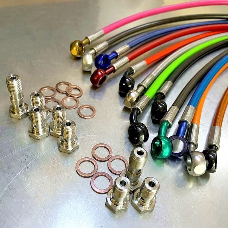 De même, le tuyau téflon utilisé pour le transport des fluides ne se ramollira pas avec la pression hydraulique. Il ne se déformera pas lors du freinage, comme cela se produit souvent avec un tuyau en caoutchouc.